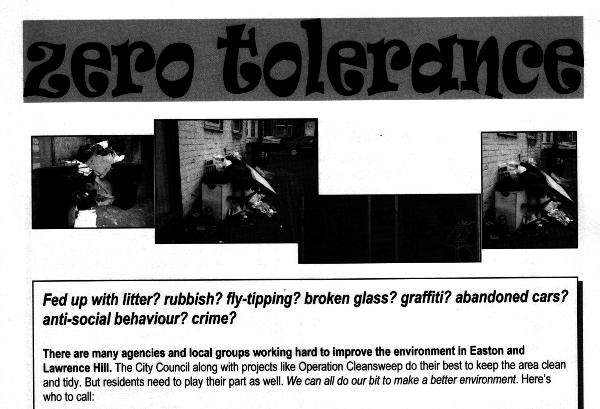 The 2006 article then goes on to give telephone numbers for residents to call to deal with these matters. The telephone number for reporting street cleaning matters and abandoned cars, etc. has since changed to 0117 922 2100 and readers may find it more convenient to report these and other problems online.