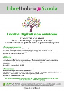 The first of three free seminars organised by LibreUmbria – the organisation promoting free and open source software in Italy’s Umbria region – aimed at parents and teachers is being organised at the Giovanni Cena primary school in Perugia at 3.30 pm on Monday 10th March, the LibreUmbria blog reports.
